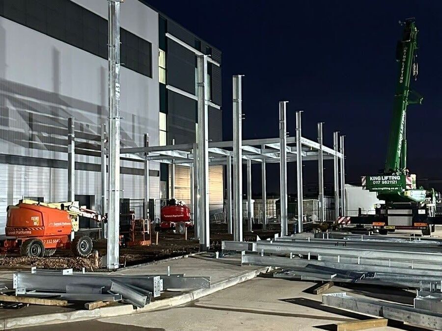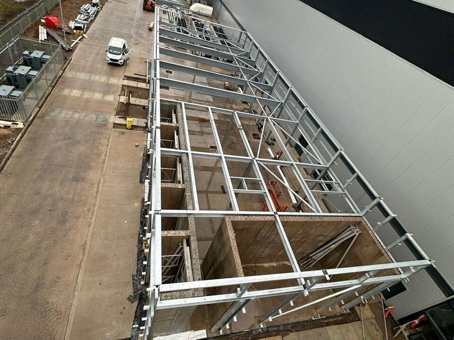 We were contracted by the client to deliver a 30t steel frame complete with metsec and roof comflor decking. The installation required cooperation with the blast proof concrete wall contractor for shuttering and pouring access.