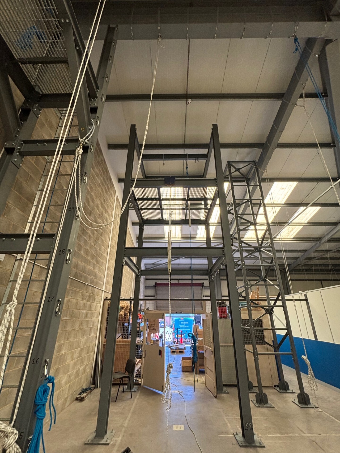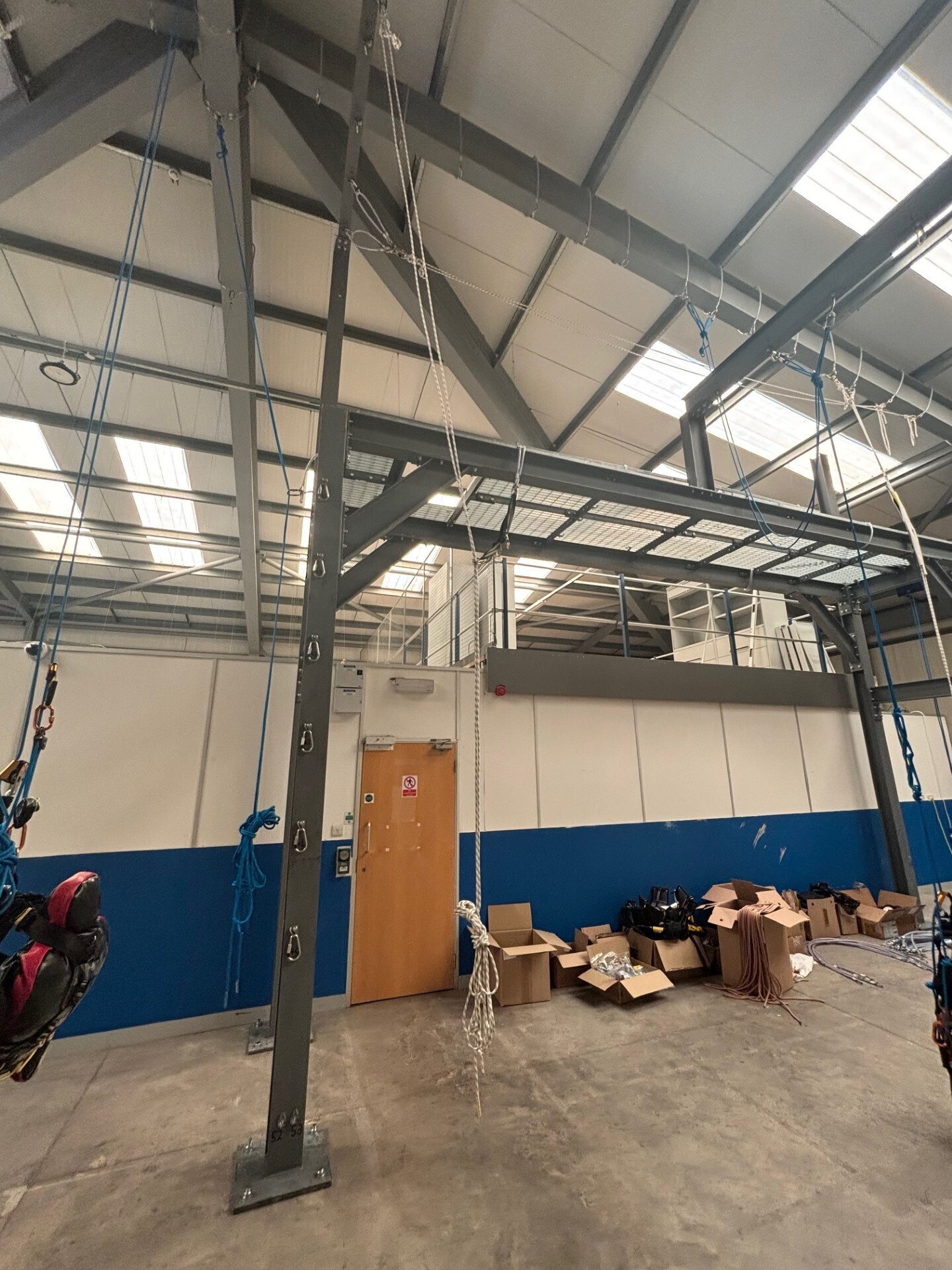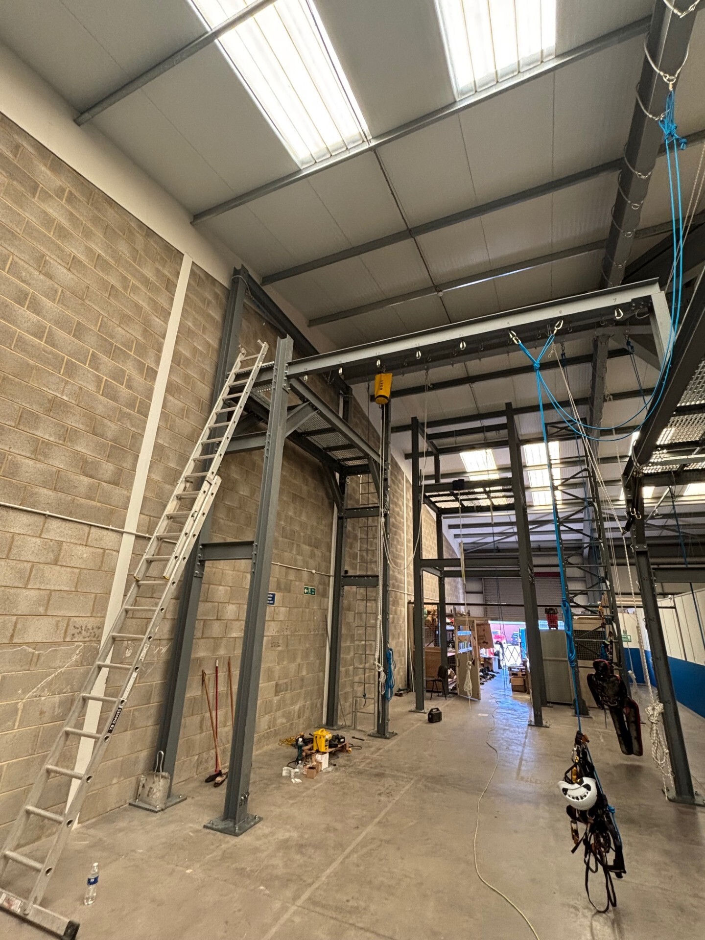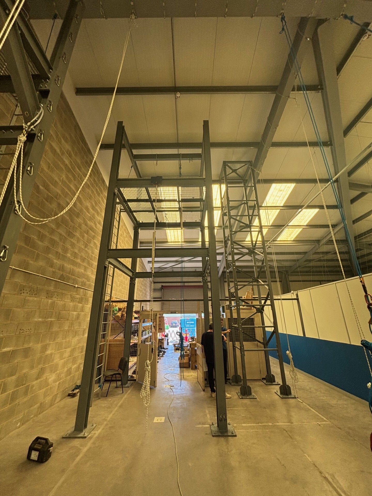 We were contacted by MAE Solutions to provide a variance of steel frames which will allow the client to undertake in house abseil training for their clients. We worked closely with the client in order to achieve the exact requirements from the space they had to work with. The approximate 15t of steelwork was installed in an extremely tight footprint using a spider crane for erection.