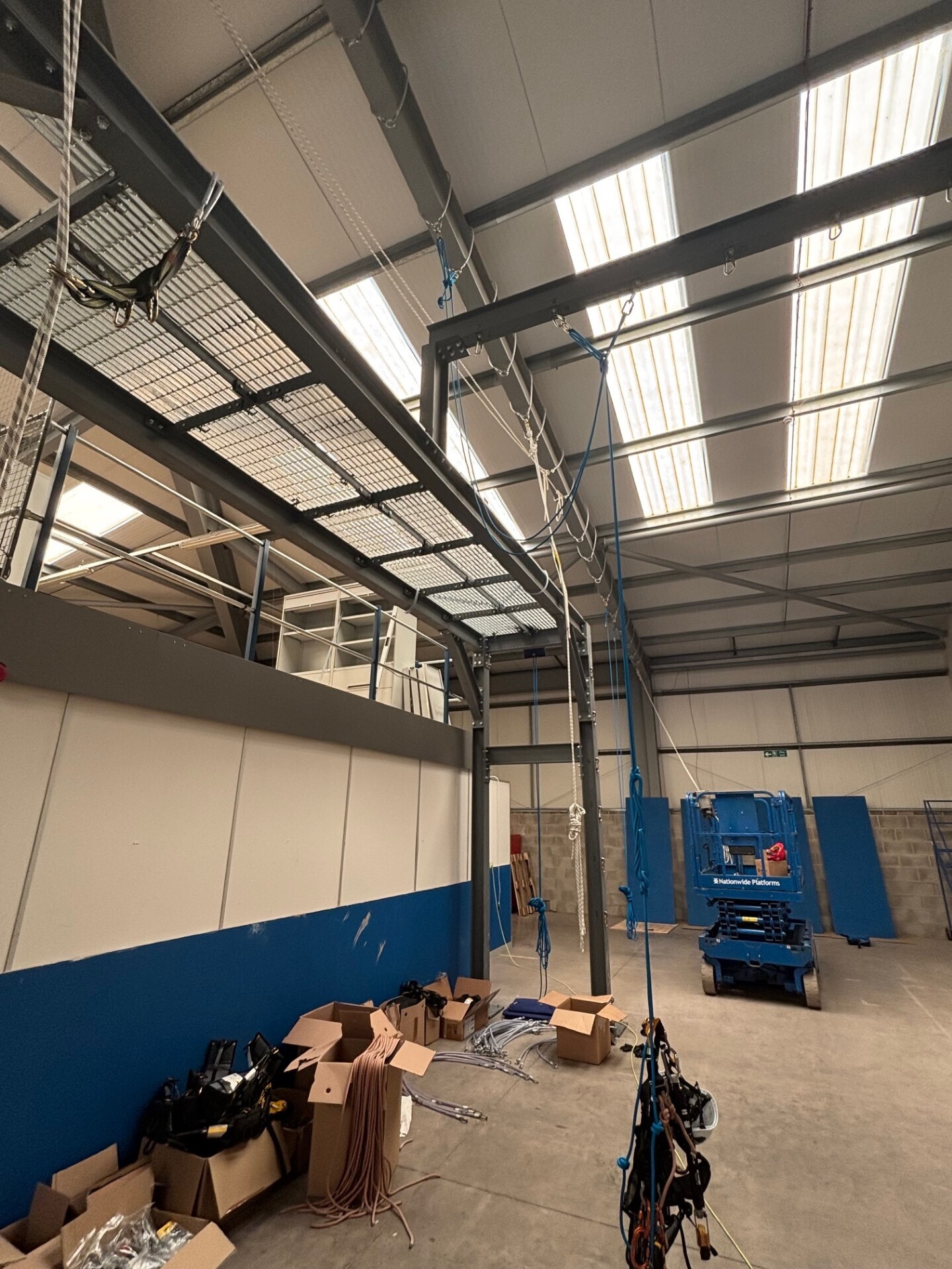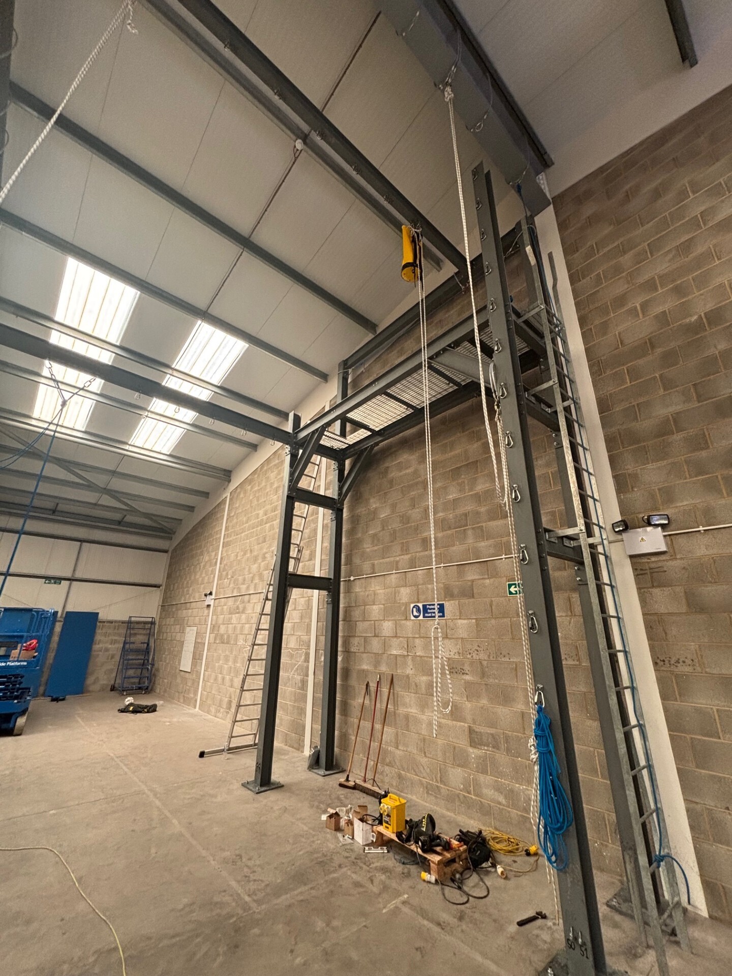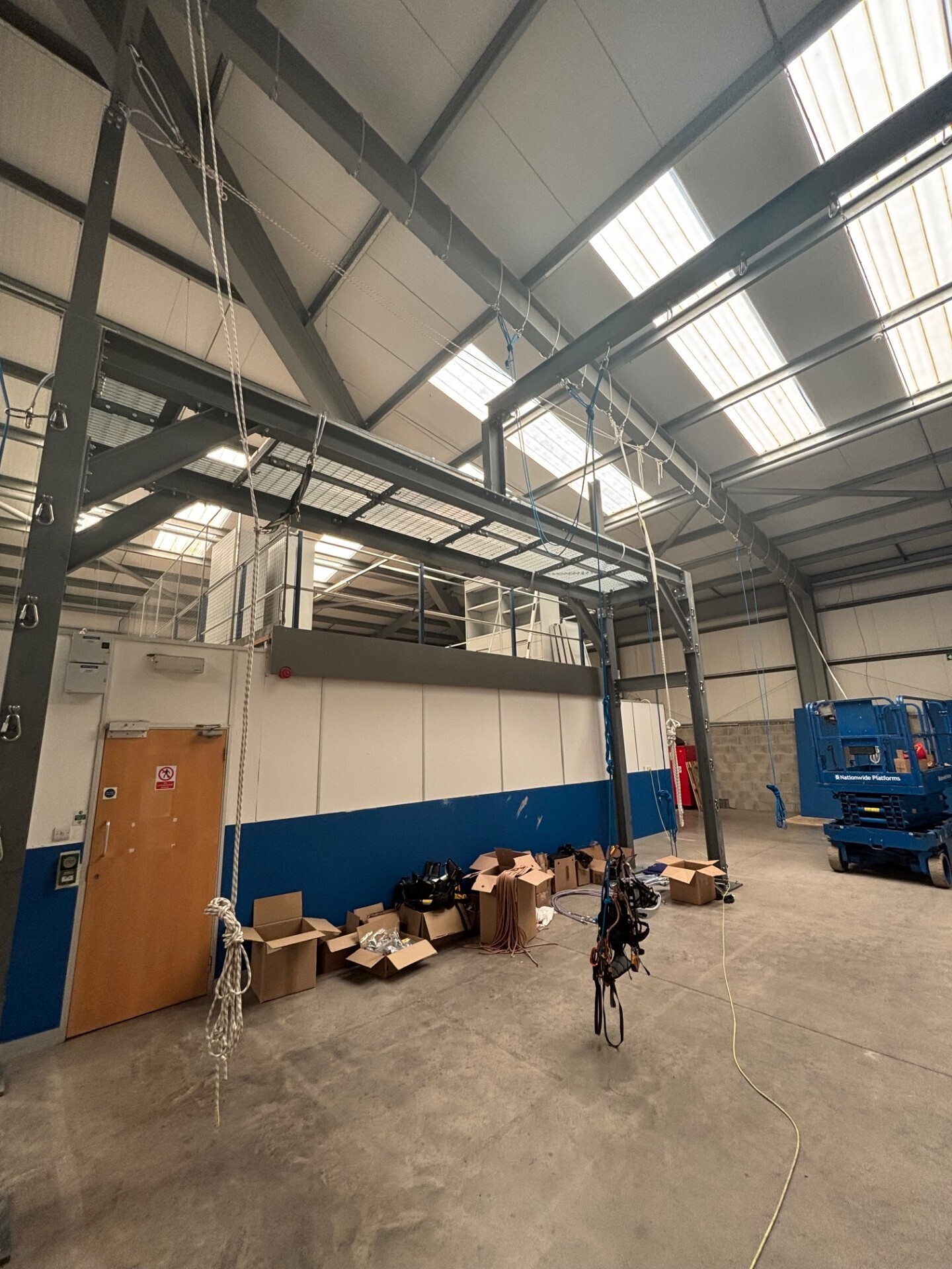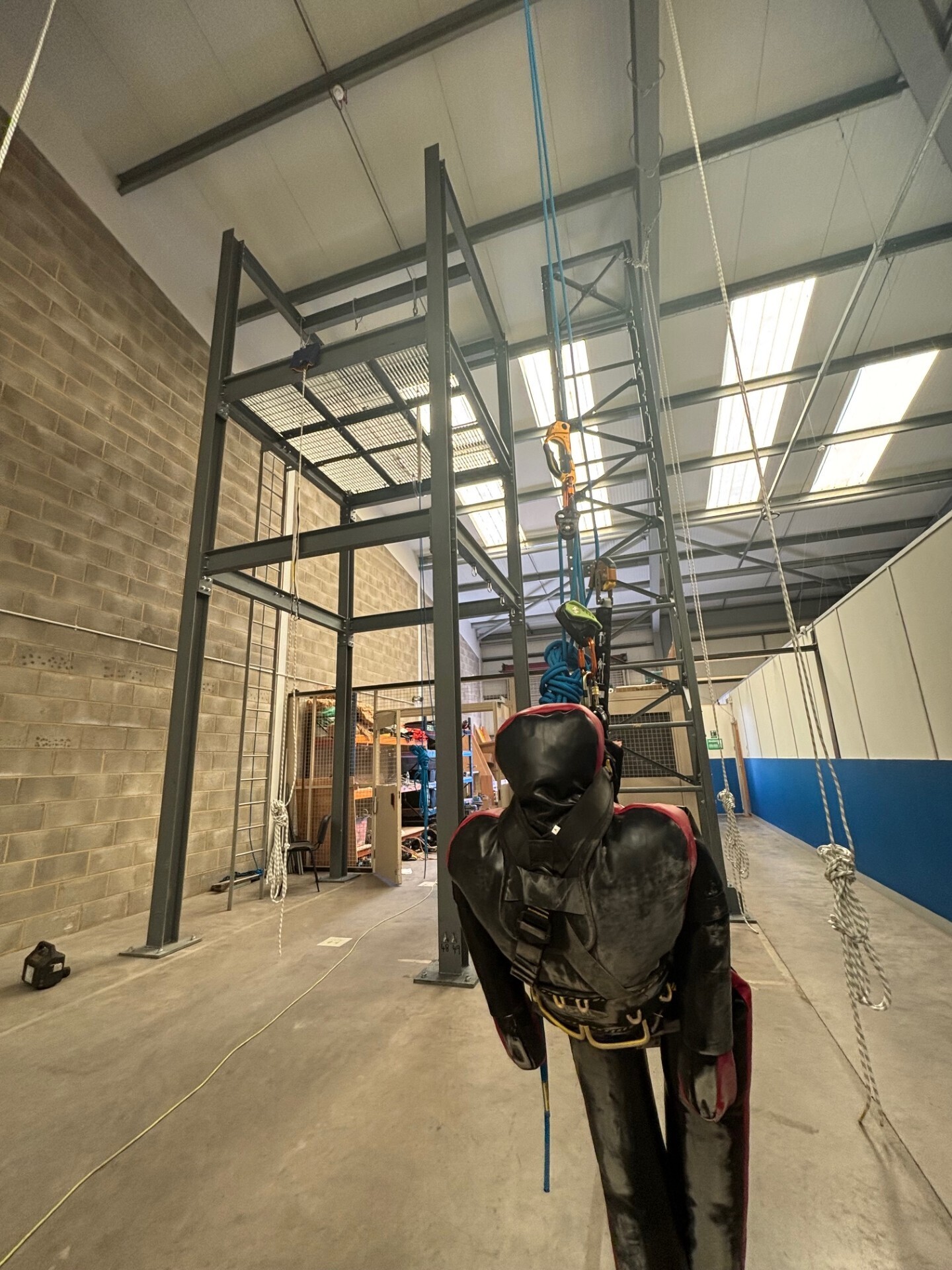 We were contacted by MAE Solutions to provide a variance of steel frames which will allow the client to undertake in house abseil training for their clients. We worked closely with the client in order to achieve the exact requirements from the space they had to work with. The approximate 15t of steelwork was installed in an extremely tight footprint using a spider crane for erection.